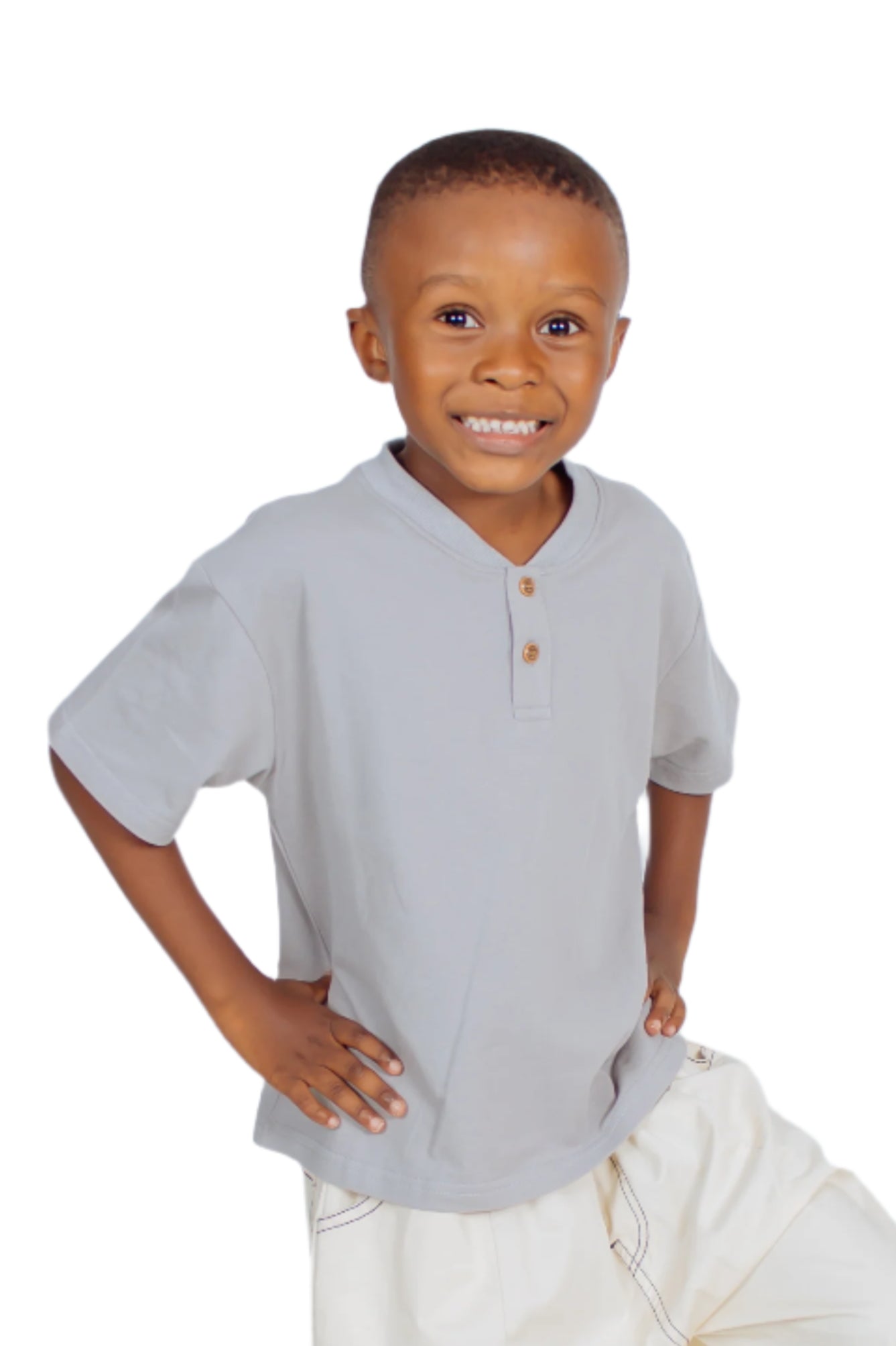This soft and breathable Henley T-shirt is the perfect blend of casual and stylish. Designed with a relaxed fit and wooden button details, it’s made from high-quality cotton to keep your little one comfortable all day long. Whether for playdates or everyday adventures, this tee is a must-have!